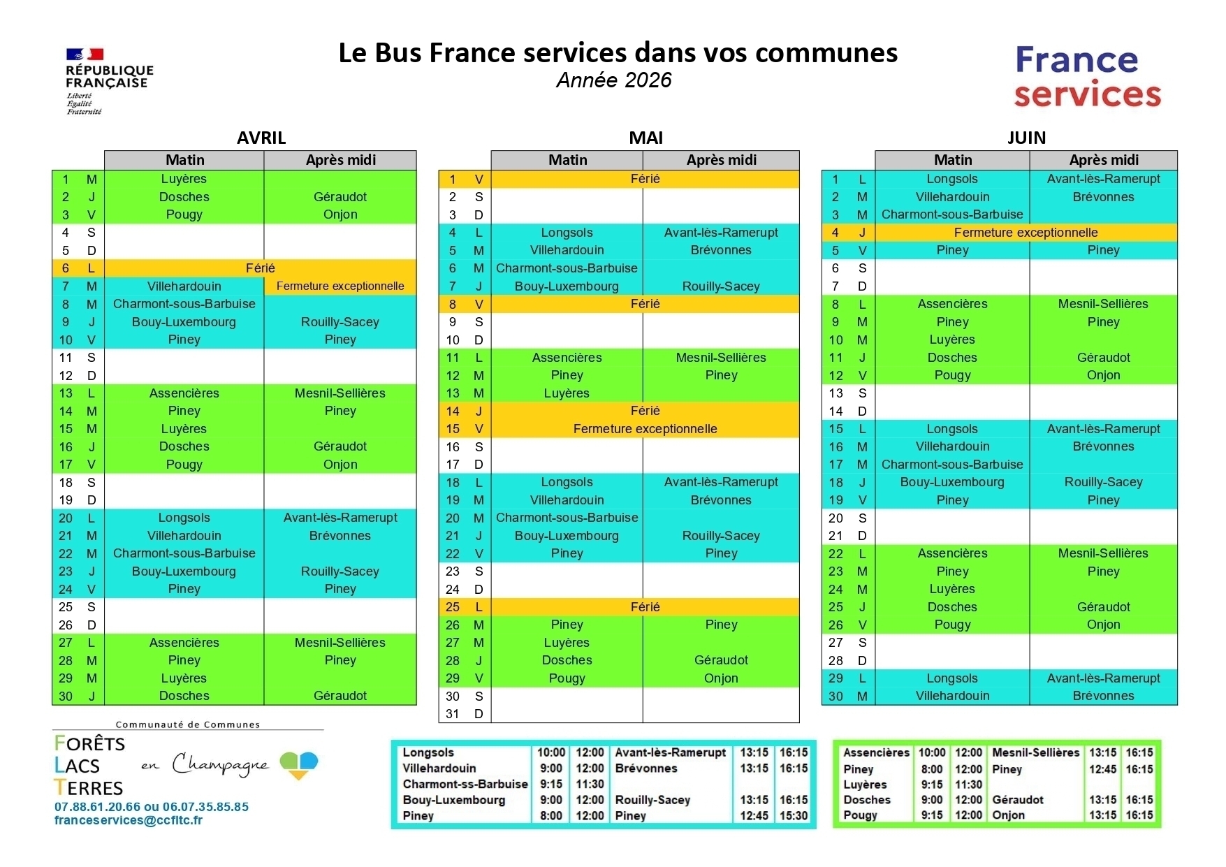 Télécharger le planning du bus France services pour le 2ème trimestre 2026